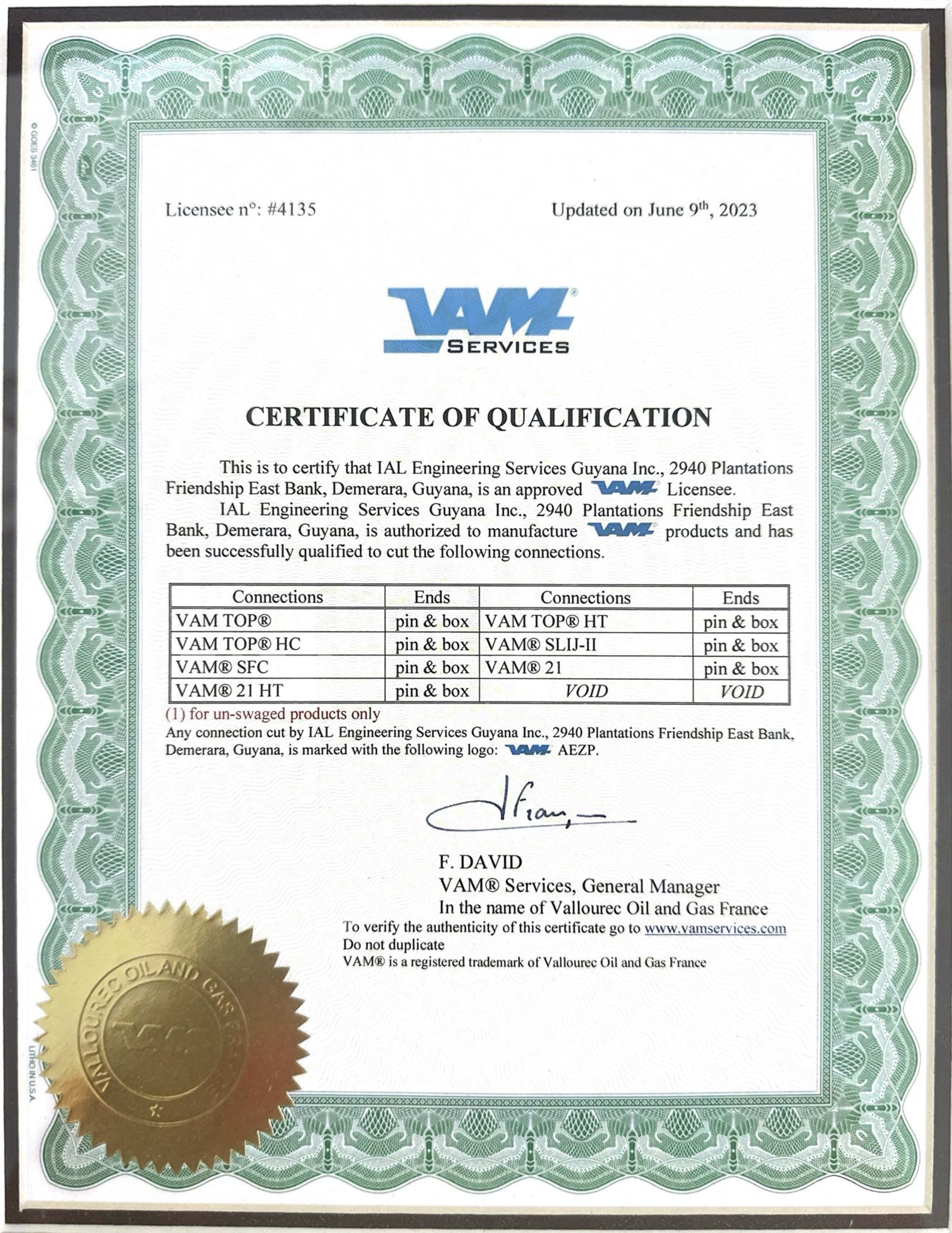 Certification of Qualification